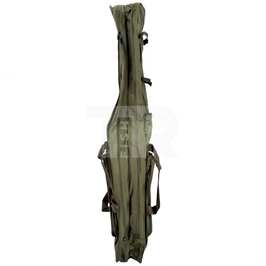 От външната страна калъфът разполага с голям страничен джоб с капак и велкро закопчаване – подходящ за колчета, кепове, обтегачи или други принадлежности. За удобно транспортиране са добавени плътна дръжка за ръка и регулируема презрамка за носене на рамо.
