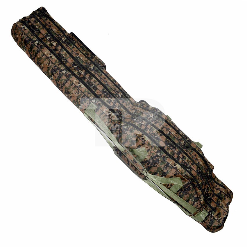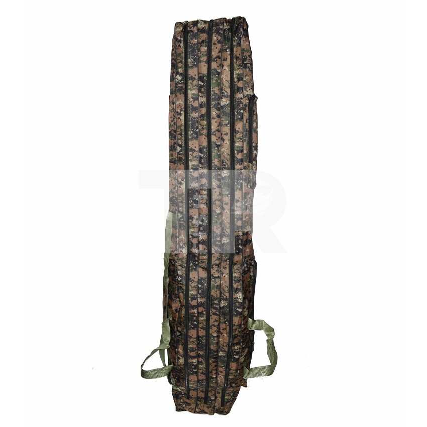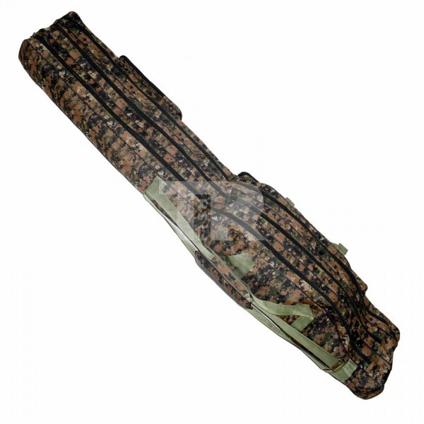 Здрав и функционален троен калъф за въдици ROBINHAN Military Camo, създаден за надеждна защита и удобен транспорт на риболовното оборудване. Конструкцията включва три отделни отделения с двупосочни ципове, които позволяват съхранение на въдици с макари, без риск от повреди. Изработен от издръжлив водоотблъскващ плат в милитъри камуфлажен десен, този модел комбинира практичност и стил.