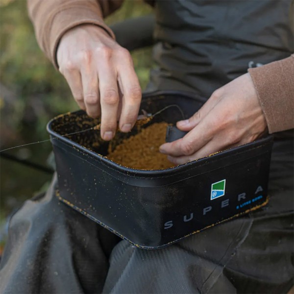 Футерът е изработен от висококачествен EVA материал, който е водоустойчив, здрав и изключително лесен за почистване. Формата позволява удобно разбъркване на захранката, а стабилната конструкция запазва формата си дори при интензивна употреба. Моделът е напълно съвместим с останалите продукти от серията PRESTON Supera EVA.