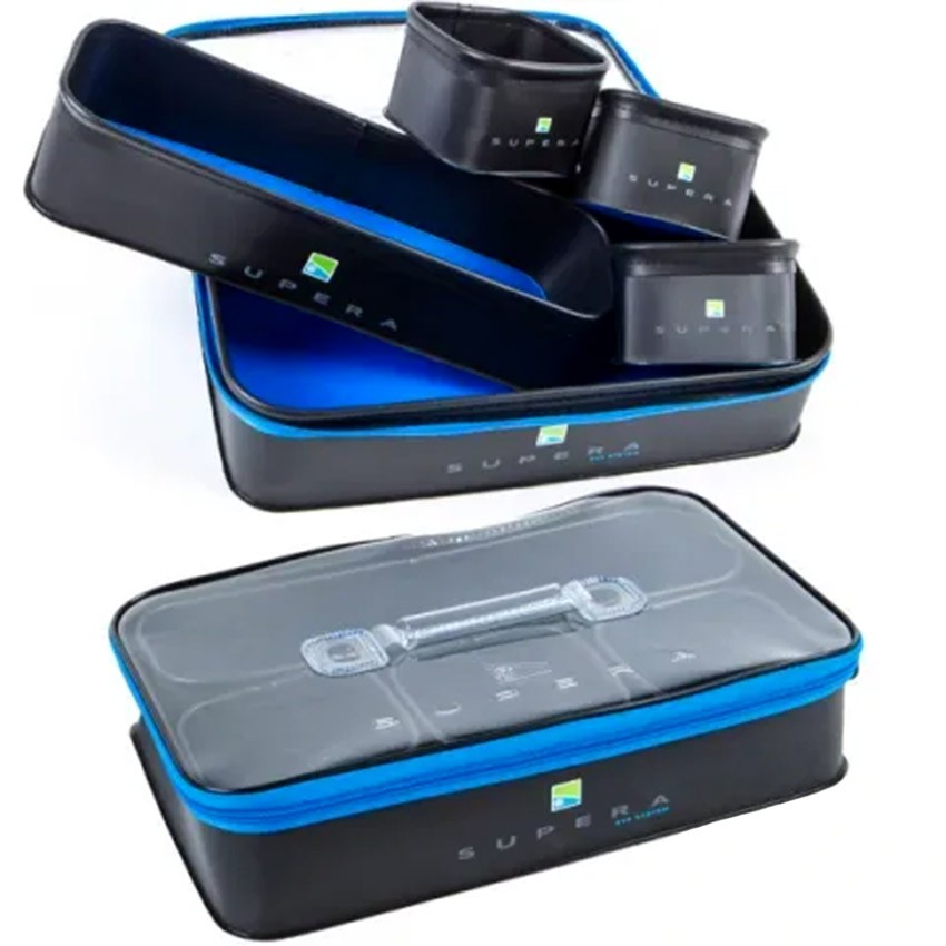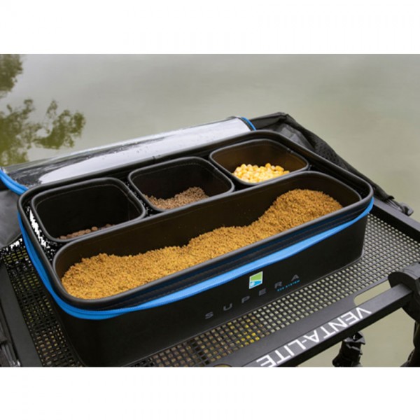 PRESTON Supera EVA System са специализирани футери за съхранение и транспортиране на стръв и захранки, създадени за фидер и състезателен риболов. Те осигуряват отлична организация, защита от влага и удобство при работа на брега, като са напълно съвместими с останалите EVA продукти от системата PRESTON.