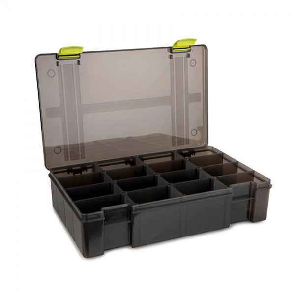 MATRIX Storage Box 16 Compartment – Deep е висококачествена, дълбока кутия за съхранение и организация на дребни риболовни аксесоари. С 16 отделения и увеличен вътрешен обем, този модел е идеален за по-фина подредба на вирбели, стопери, конектори, тежести, халки, куки, метод аксесоари и всякакви дребни такъми, които изискват ясно разделяне.