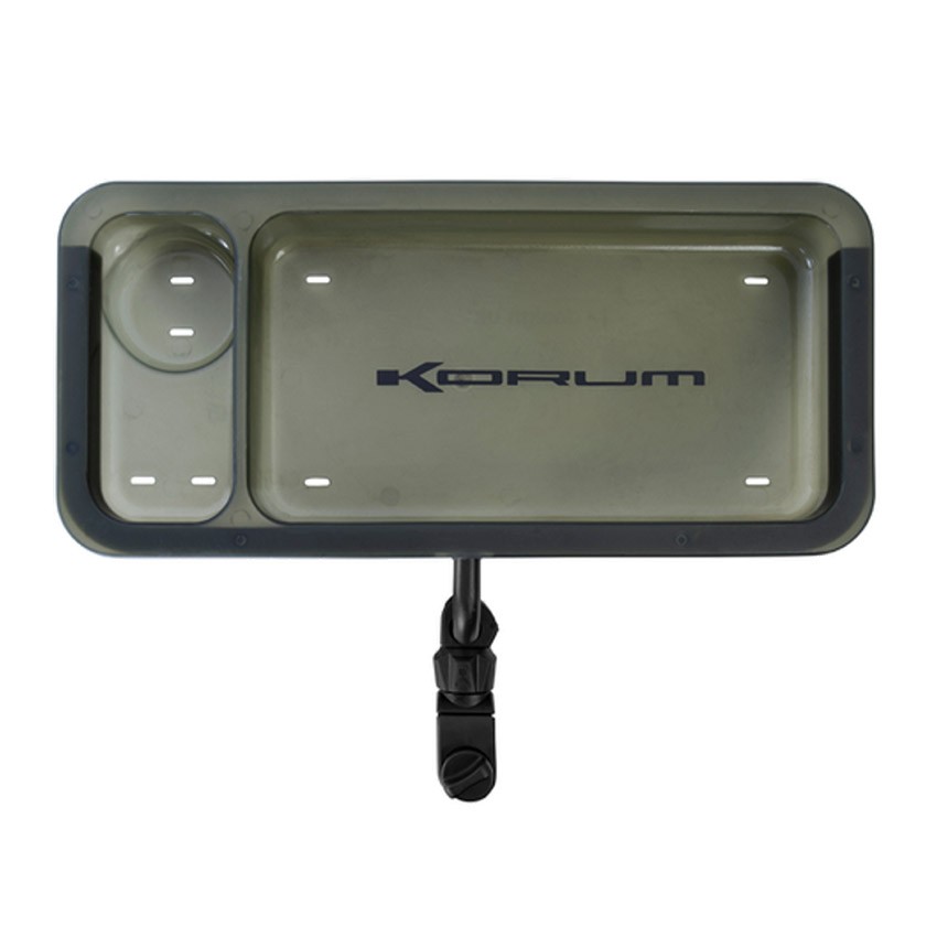 Korum Accessory Side Tray е практична и здрава прикачна маса за стол, част от системата Any Chair, която превръща риболовния стол в напълно модулна работна станция. Масата се монтира бързо и лесно чрез отваряне на захващащия механизъм, след което с помощта на включените адаптери се постига перфектно прилягане към крака на стола.
