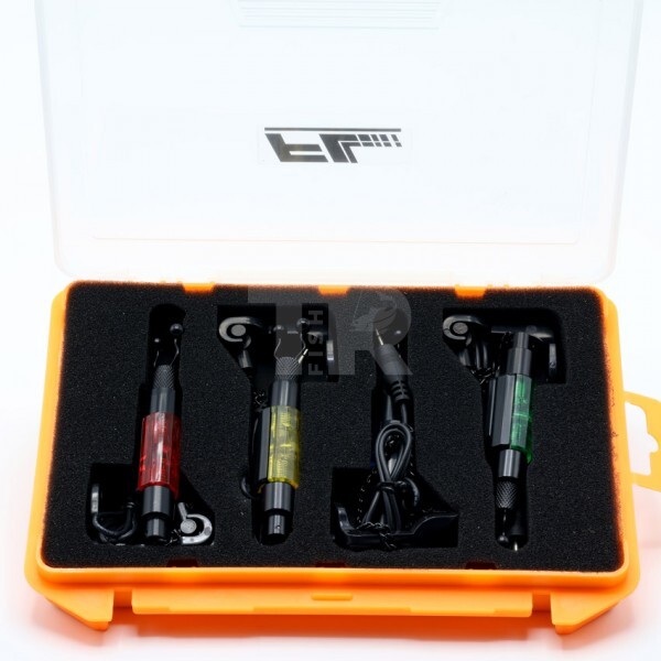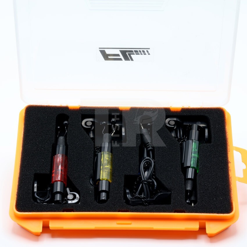FL JY-SW 10B е комплект от четири светещи обтегача (hanger тип), създадени за прецизна и ясна индикация при кълване, особено при нощен риболов. Главите са изработени от прозрачен акрил в различни цветове – червен, жълт, зелен и син, като всяка разполага с LED осветление, което се активира при свързване към сигнализатор чрез стандартен 2.5 мм жак.