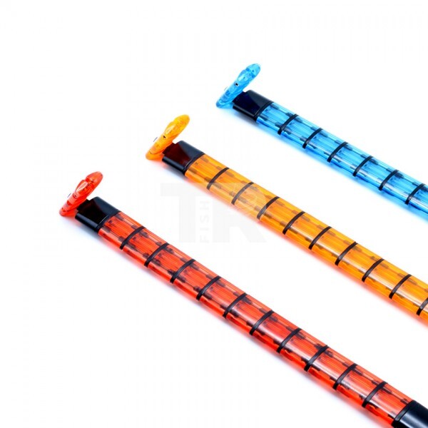 Клипът за влакното е мек и сигурен, като гарантира плавно освобождаване при засичане. Цветовете са ярки и отчетливи – червен, син и оранжев, което улеснява бързата ориентация на риболовеца при повече въдици.