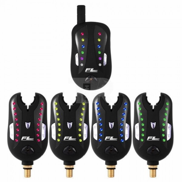 FL JY17 4+1 е висококачествен комплект сигнализатори, състоящ се от четири сигнализатора и един безжичен приемник, създаден за надежден контрол при риболов с няколко въдици. Моделът впечатлява със стилен дизайн, отлична чувствителност и разширена визуална индикация чрез LED осветление по цялата дължина на корпуса.