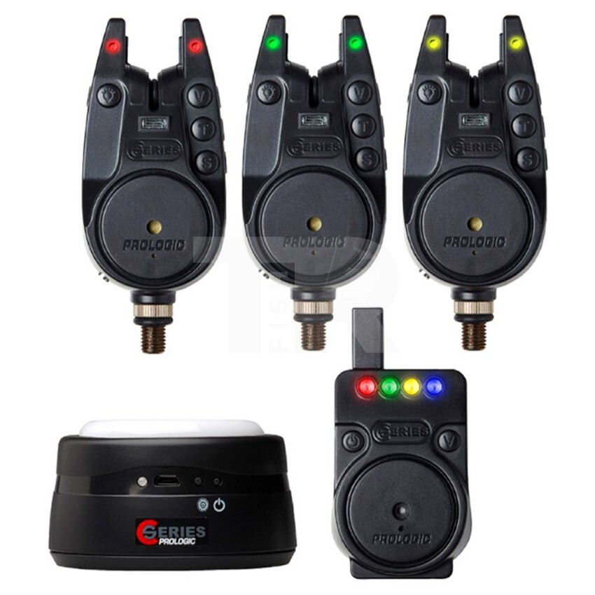 Prologic C-Series Alarm Set 3+1+1 е комплект от три аларми, приемник и безжична bivvy-светлина, създаден за надеждна индикация на кълване и контрол на три въдици едновременно. Алармите предлагат шест нива за чувствителност, шест тона и шест звукови нива, което позволява прецизна настройка според условията на риболов. При откриване на кълване LED индикаторите за кратко светят и след това един остава мигащ в продължение на 20 секунди – за ясно различаване на събитието. С приемник с индикация чрез звук, светлина и вибрация и възможност за обхват до 100 метра на открит терен, този комплект осигурява контрол и спокойствие при риболовни сесии. Корпусът е устойчив на атмосферни влияния (weatherproof), а комплекта включва изход 2.5 мм за свързване на свещи или swinger-и.