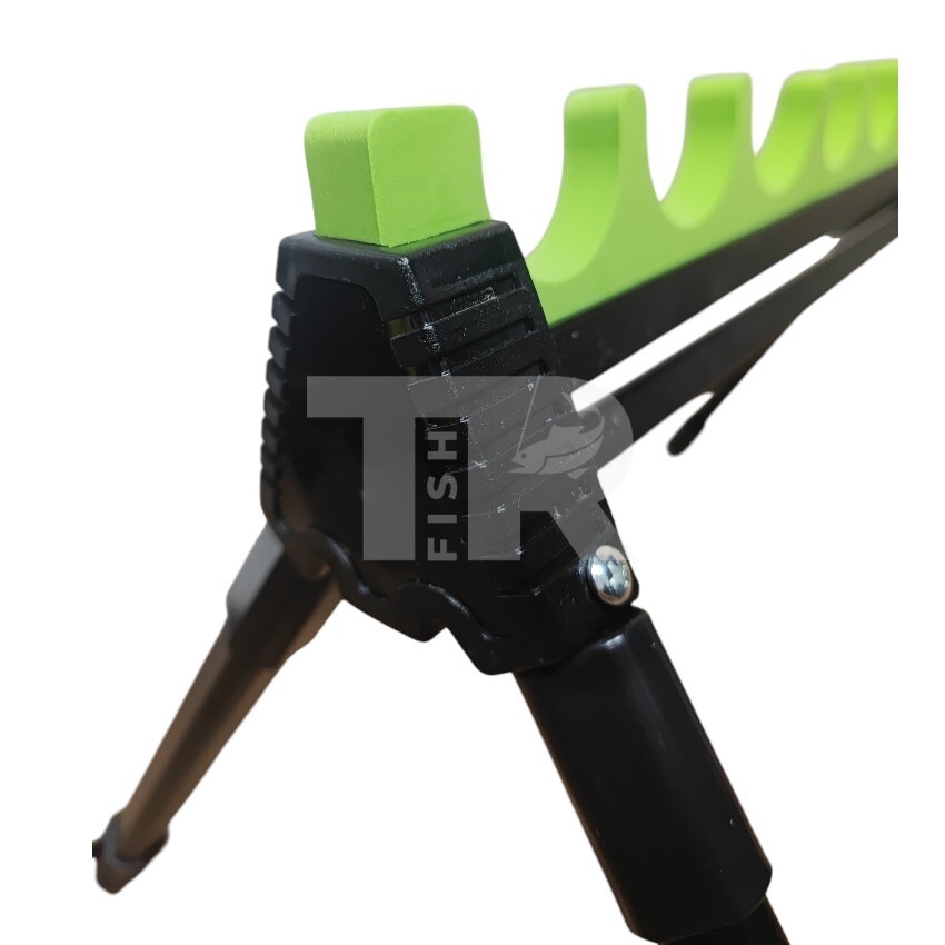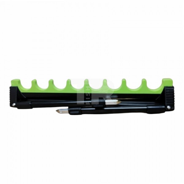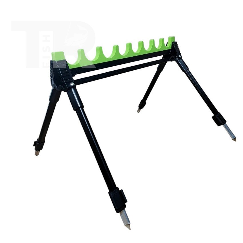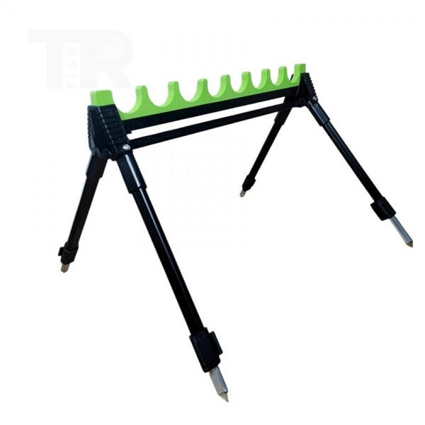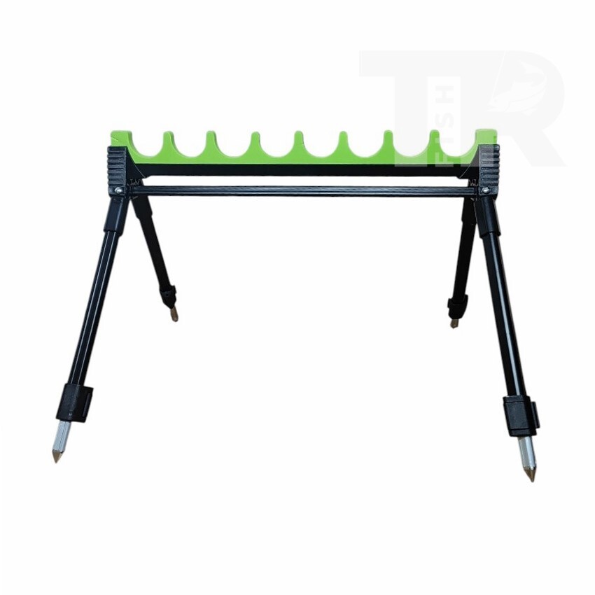 Стойката позволява едновременното поставяне на до 8 въдици, което я прави удобна при подготовка на монтажи, смяна на такъми или подреждане на резервни въдици. Конструкцията е стабилна и компактна, а специалните канали държат въдиците сигурно без риск от надраскване.