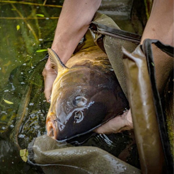 Карп-сакът разполага с двойни дръжки за теглене с центриращи уши, подсилени шевове във всички натоварени точки и здраво въже за сигурно фиксиране. След употреба се прибира в компактна, водоустойчива калъфка, което улеснява транспортирането и съхранението.