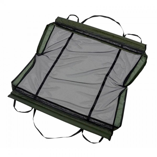 Използваната тъмна, мека и рибо-щадяща мрежа намалява проникването на светлина и осигурява отличен водообмен, което поддържа рибата спокойна, свежа и в оптимално състояние, докато подготвяте кантара и камерата. Материалът е бързосъхнещ, подходящ за практичен и отговорен риболов.