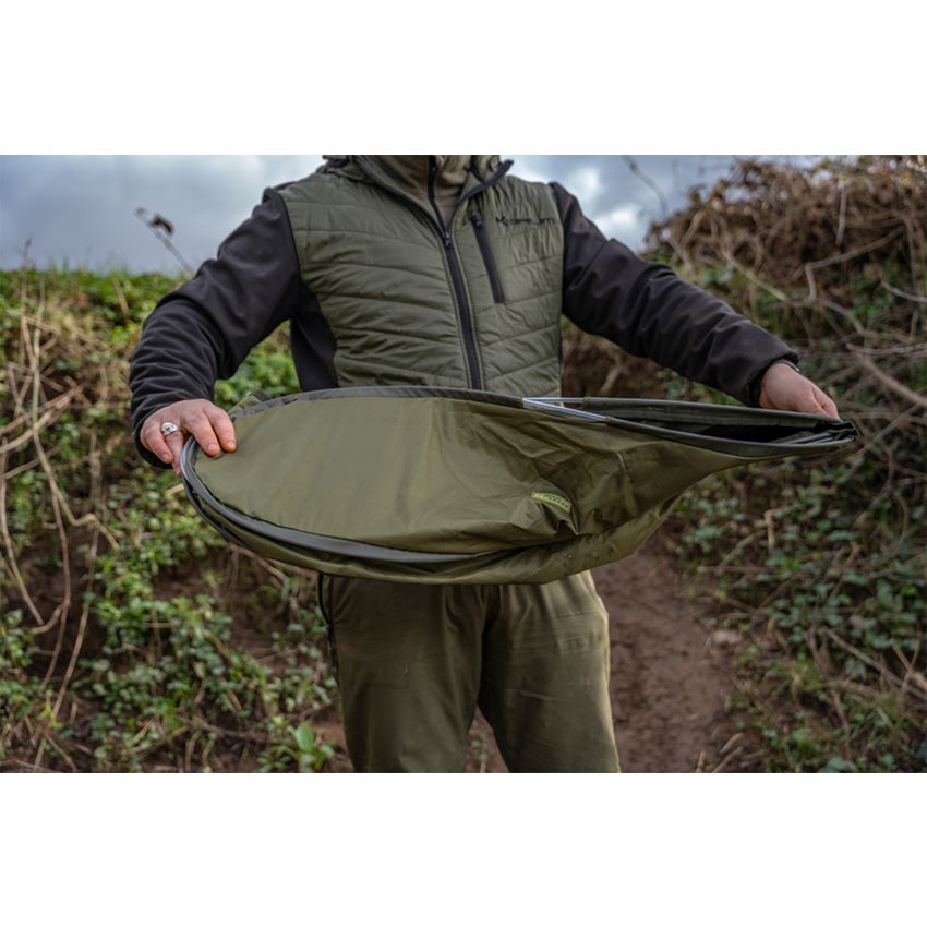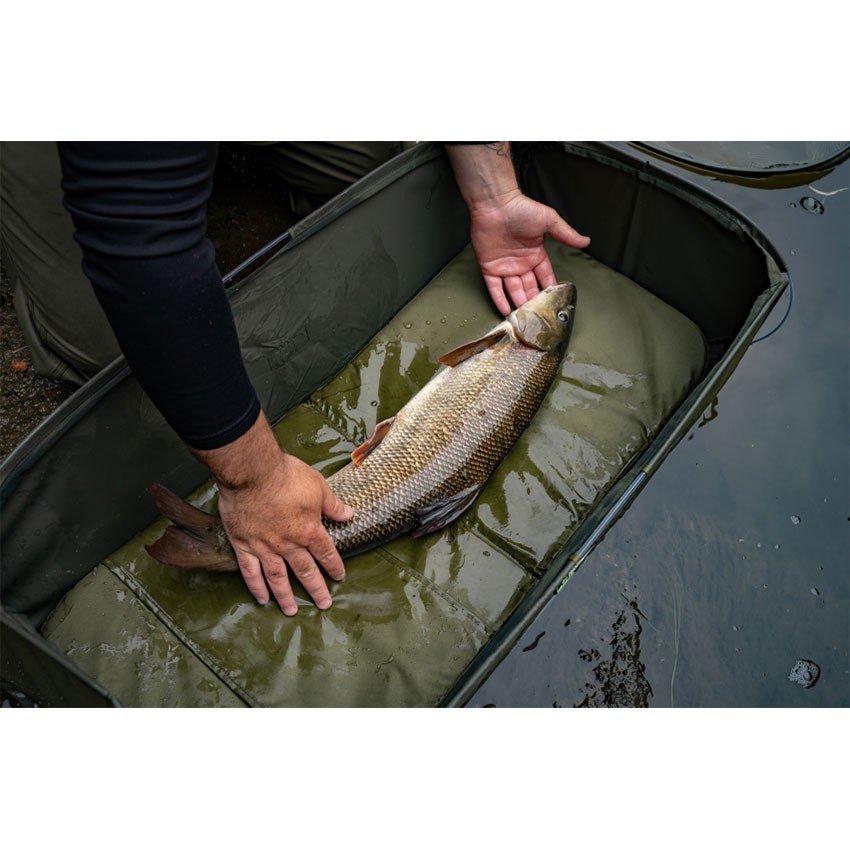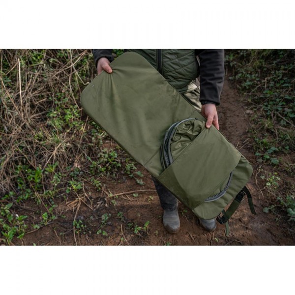 Конструкцията позволява мълниеносно сглобяване: просто развивате рамката, поставяте водоустойчивия подплатен матрак и дюшекът е готов за употреба. Прибира се също толкова лесно. Може да се закача към всички Korum чанти, което го прави идеален за „скитащ“ стил на риболов.