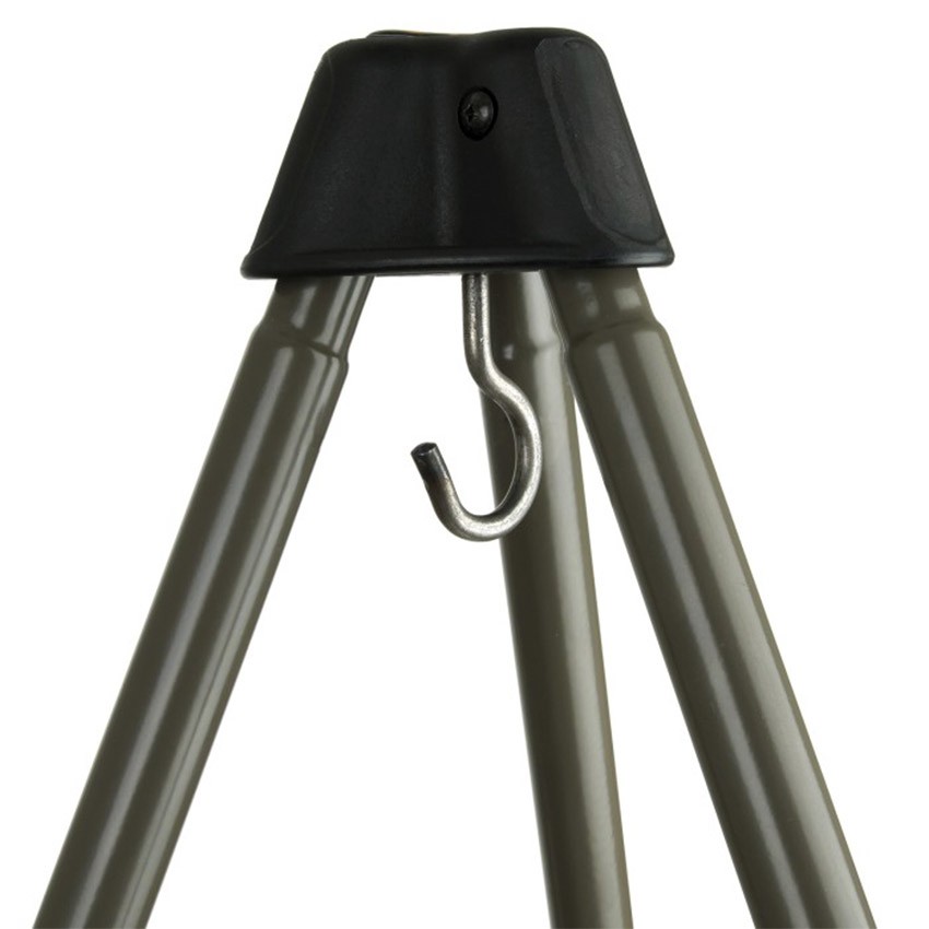 Триподът разполага с двусекционни крака със съединител в средата, който предотвратява приплъзване на краката при натоварване с тежка риба. Широкия разкрач осигурява отлична стабилност дори при неравен терен, а конструкцията от висококачествена, устойчива стомана гарантира дълъг експлоатационен живот.