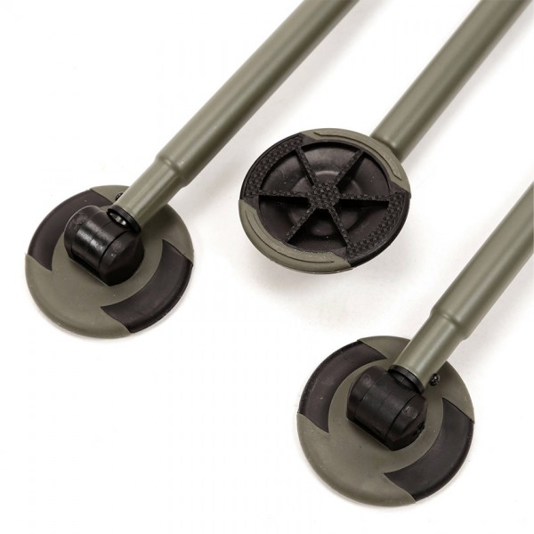 Конструкцията е здравa, но лека, с двусекционни крака, които осигуряват отлична стабилност и бързо разгъване. Оборудван е с голяма кука за теглене от неръждаема стомана, подходяща за тежки люлки и карп-сакове. Краката гарантират стабилност върху меки и неравни терени.