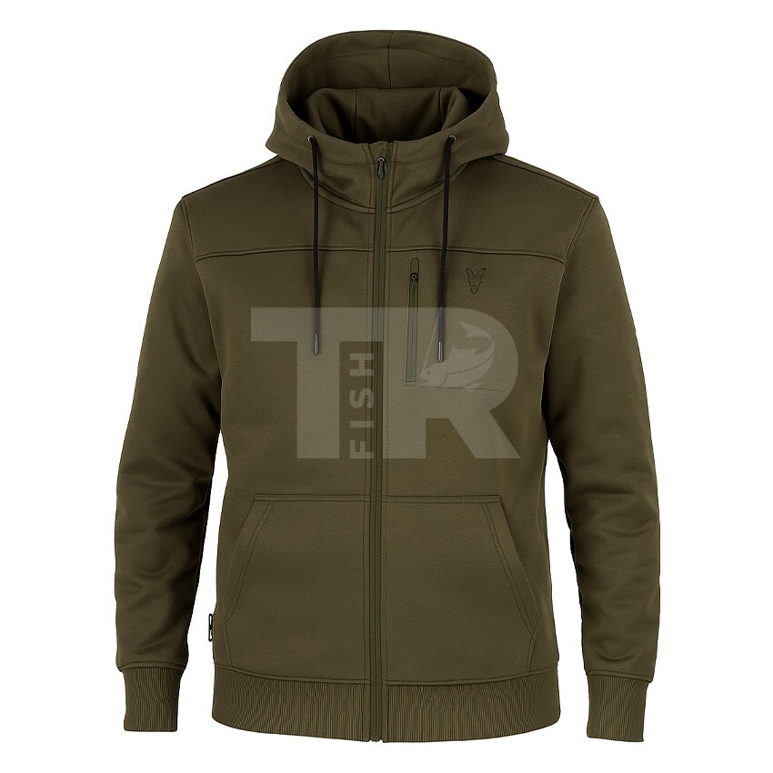Дизайнът е в класически зелен цвят, характерен за FOX, с висока яка и регулируема качулка, предпазваща от вятър и влага. Якето разполага с практични джобове с цип за сигурно съхранение на принадлежности и еластични маншети за перфектно прилягане.