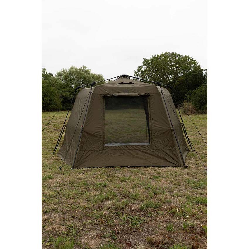 FOX EOS Social Shelter – XL е просторна шаранджийска шатра, създадена за комфортен престой край водата. Моделът е с бързо разпъваща се конструкция, която позволява лесен монтаж от един човек, без необходимост от добавяне или премахване на допълнителни рейки.