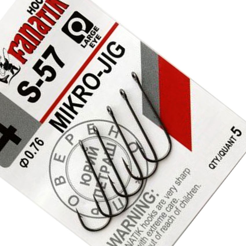 Fanatik Mikro Jig S-57 са висококачествени единични джиг куки, разработени за риболов със силиконови примамки. Произведени са в Корея по съвременни технологии от стомана с повишено съдържание на въглерод VHI-Carbon, което осигурява отличен баланс между здравина и ниско тегло при всеки размер.