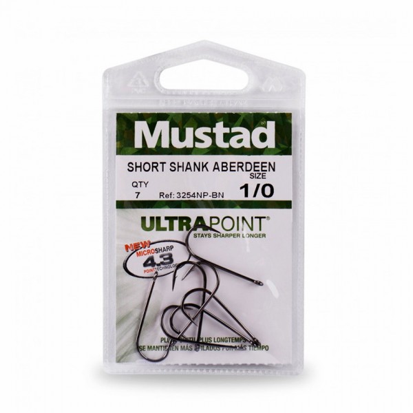 Mustad Short Shank Aberdeen 3254NP-BN са универсални куки с класическа извивка, предпочитани от риболовци както в солени, така и в сладки води.