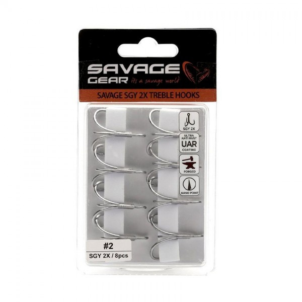 Savage Gear SGY 2X Treble Hooks са изключително здрави и надеждни тройни куки, предназначени за морски риболов и за подмяна на фабрични куки на примамки. Те са отличен избор за повечето UK-sized лури, като осигуряват сигурно закачане и стабилен захват при силни атаки.