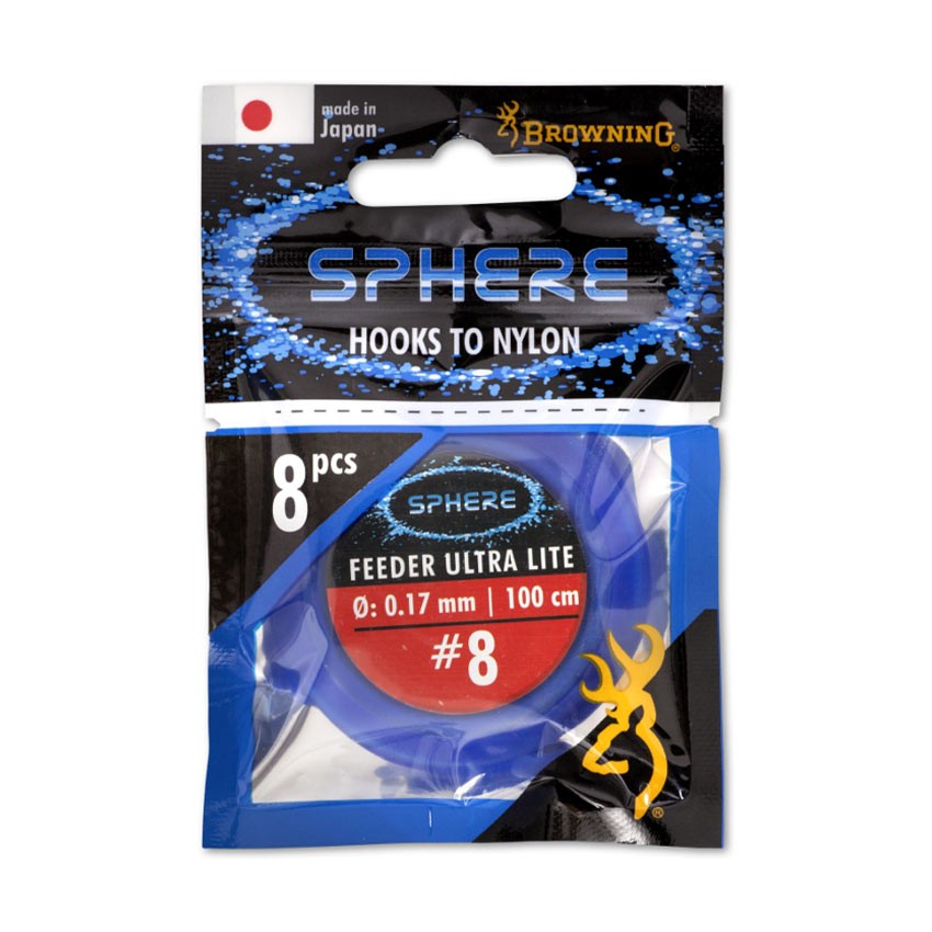 Browning Sphere Feeder са фабрично вързани куки, считани за едни от най-леките и най-острите на пазара в своя клас. Въпреки изключително ниското си тегло, куките запазват достатъчна здравина, за да се справят и с по-едри риби при фидер риболов.