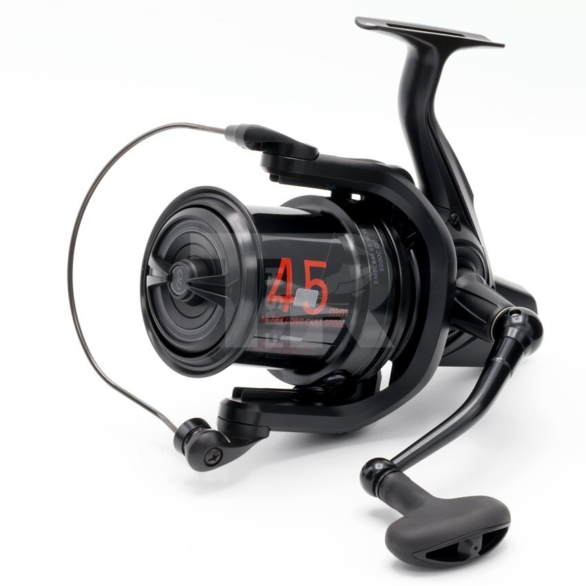 Emblem 45 SCW QD съчетава технологии, които дават предимство в далечния риболов- 45 мм Long Cast шпула и Slow Cross Wrap система позволяват да замяташ на големи дистанции с по-малко съпротивление. Digigear II осигурява плавен ход и добра трансмисия, а QD drag системата ти позволява да превключиш от свободна шпула към пълен мощен аванс само с един оборот на копчето.