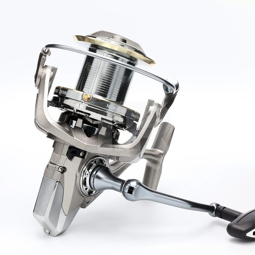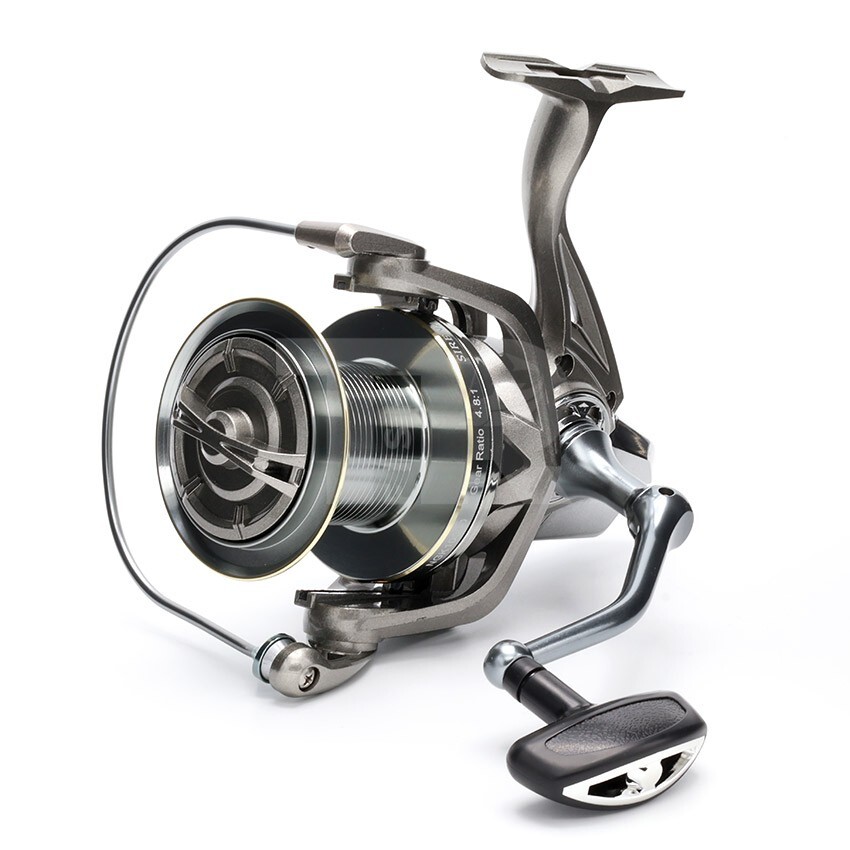 Здравата и устойчива конструкция осигурява стабилност при натоварване, а металната шпула гарантира равномерно навиване на дебели влакна и шок лидери. Предният аванс е с прецизна настройка и позволява сигурен контрол при борба с едри и силни риби.
