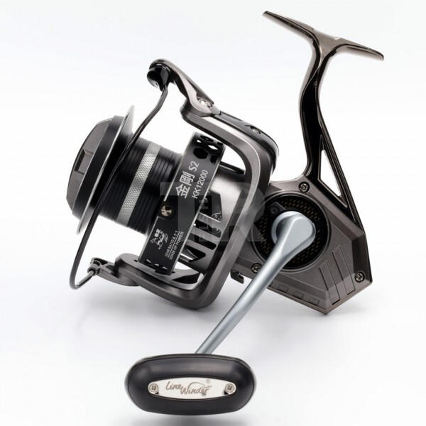 Дизайнът е здрав, без излишни усложнения, с метална дръжка и надежден стоп лагер за прецизно управление. Макар и без резервна шпула, KK 12000 компенсира с мощ, надеждност и сигурност при тежки условия.