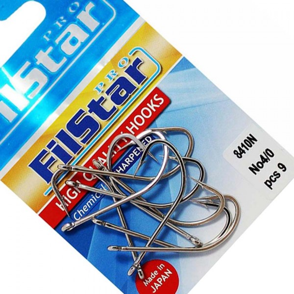 Filstar 8410N са здрави ковани куки с ухо, предназначени за риболов на хищници като бяла риба, костур и сом. Моделът е с дълго рамо, което осигурява стабилно закачане и по-добър контрол при вадене на рибата, особено при активен риболов и използване на по-обемна стръв.