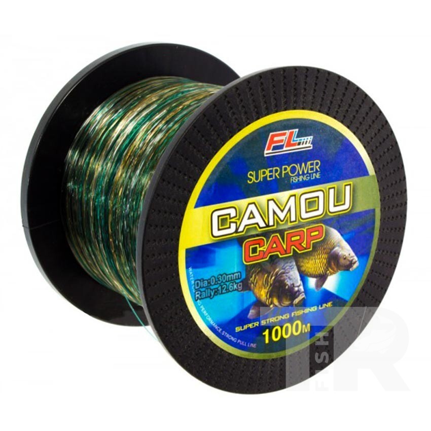 FL Camou Carp 1000 м е монофилно влакно от ново поколение, създадено специално за шаранджийски риболов и риболов на дистанция. Камуфлажното оцветяване в матови тонове се слива с цвета на дъното и скрива влакното във водата, което е ключово при риболов на предпазливи риби.