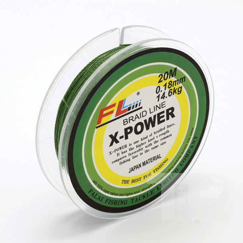 FL X-Power Braid 20m е специално плетено влакно, предназначено за поводни линии — съчетава гъвкавост и здравина. Версията от 20 м е идеална за риболовци, които искат подменят често поводите без да използват дълги ролки.