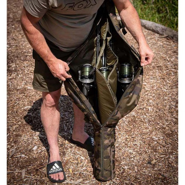 Премиум калъф от серията FOX Camolite Explorer, създаден специално за сигурно съхранение и транспорт на три въдици с макари с дължина от 8 до 10 ft (телескопични).