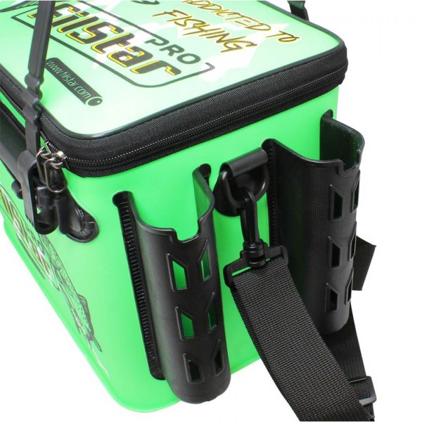 Моделът впечатлява с функционален дизайн и практични решения – голямо основно отделение, множество вложки за аксесоари и възможност за фиксиране на въдици в изправено положение.