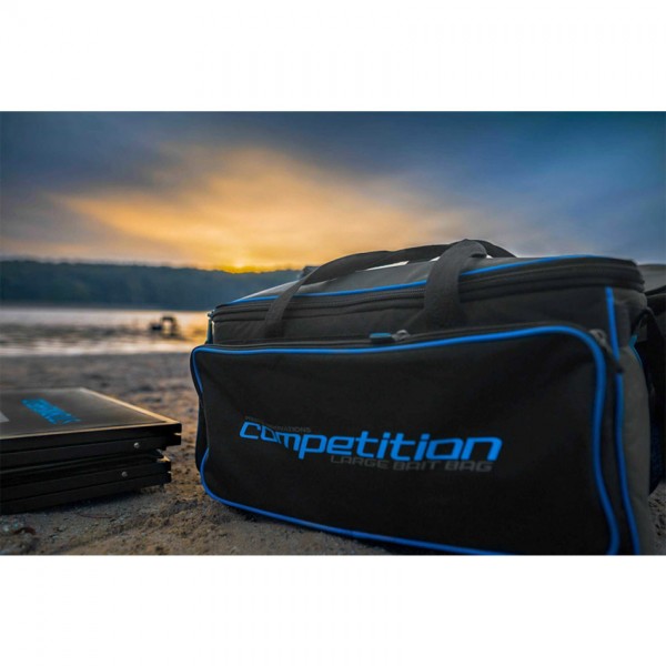 PRESTON Inovation Competition Bait Bag– Large е просторна и практична чанта за стръв и захранки, разработена за състезателен и интензивен риболов. Моделът разполага с термоизолираща вътрешна подплата, която помага да се запази свежестта на стръвта при високи температури и продължителен престой край водоема.