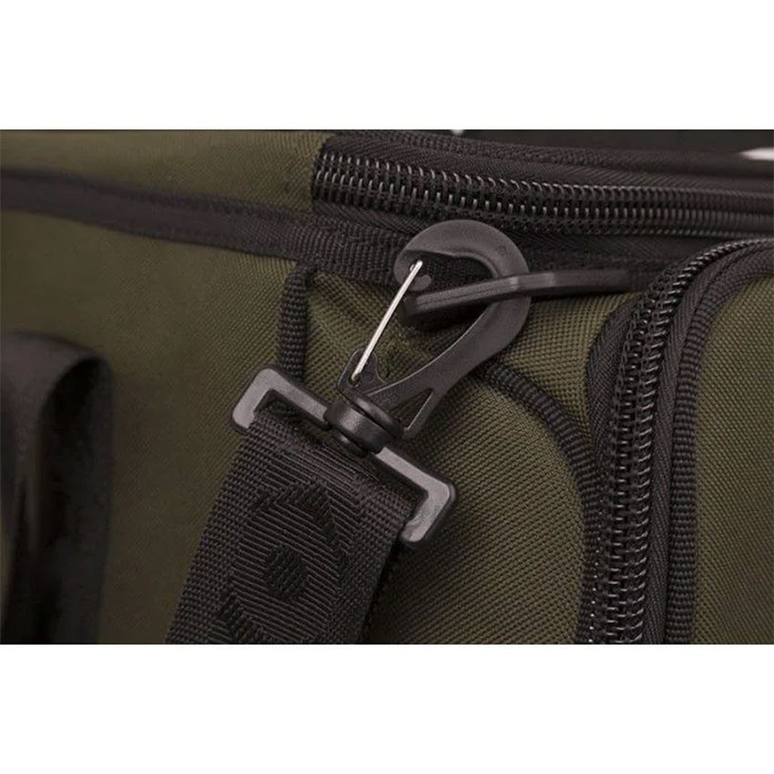 Чантата е част от утвърдената серия FOX R-Series, известна със своята здравина и функционален дизайн. Изработена е от устойчив текстилен материал, който издържа на натоварване и интензивна употреба. Просторното основно отделение позволява удобно подреждане на кутии, аксесоари, храни и лични вещи, а външните джобове осигуряват бърз достъп до най-необходимото.