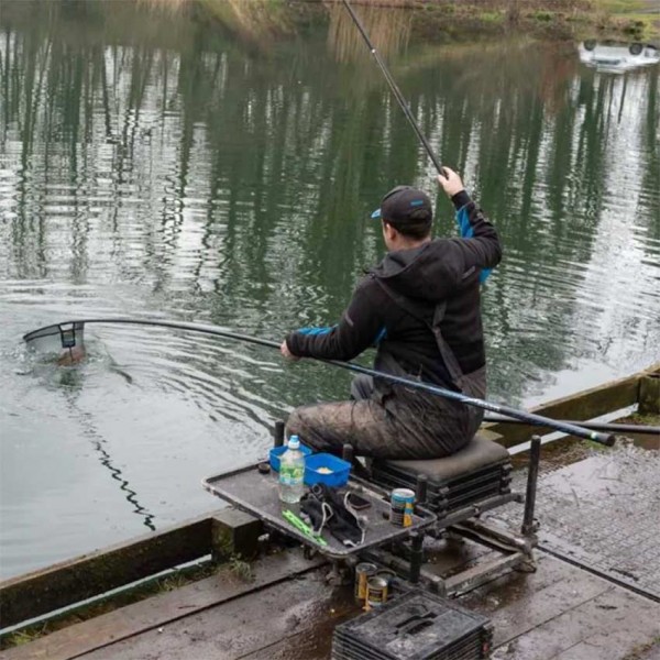 Въпреки високата си здравина, дръжката е добре балансирана и много стегната, което позволява прецизно и лесно загребване на рибата. Това я прави подходяща както за шарански и фидер риболов, така и за стандартни риболовни ситуации.