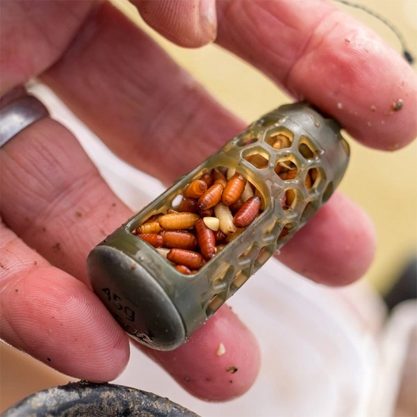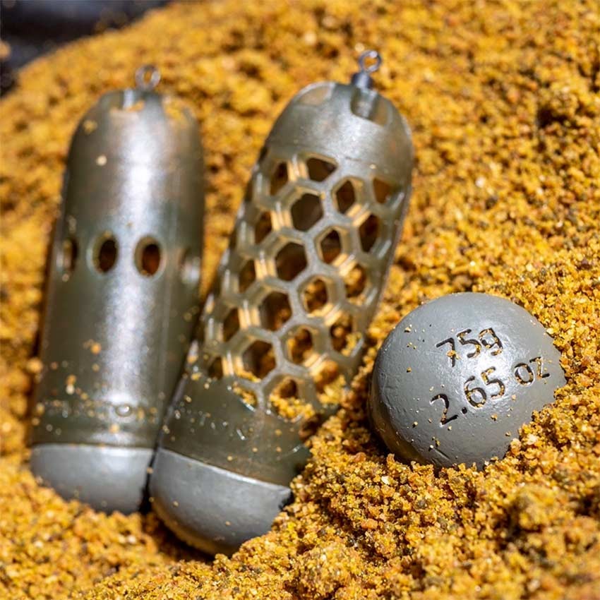 Конструкцията тип caged (клетка) позволява бързо освобождаване на захранката, а прозоръчният дизайн осигурява контролирано разпадане и равномерно разнасяне във водата. Подходяща е както за течащи, така и за спокойни води.