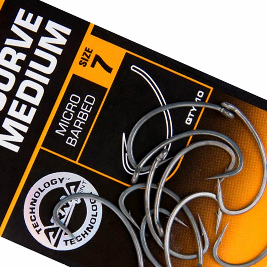 FOX EDGES Curve Medium са част от серията Arma Point – куки, проектирани с CAD дизайн за максимална острота, контрол и надеждно самозасичане. Моделът е особено ефективен при дънни монтажи и pop-up презентации и е идеален за 360 Rig.