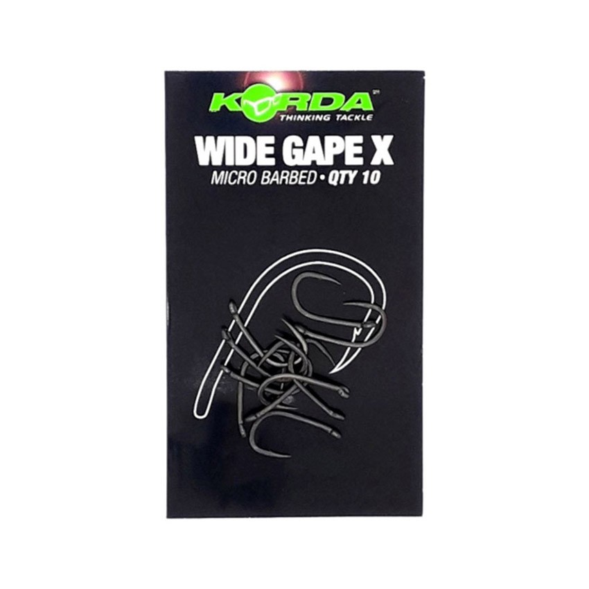 KORDA Wide Gape X е подсилената версия на класическия модел Wide Gape, създадена специално за риболов в терени със закачки, гъста растителност и по-тежки условия, включително и за екстремен риболов. Моделът запазва доказаната геометрия на оригинала, но е изработен от по-дебела японска стомана, осигуряваща значително по-висока здравина и надеждност.