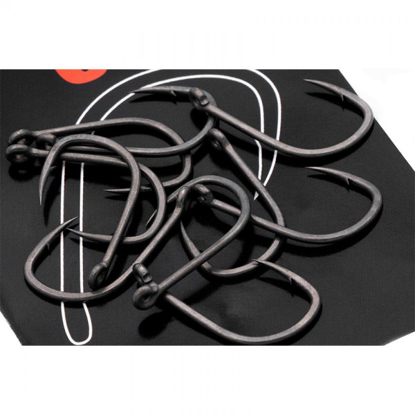 Куката разполага с късо стебло, леко обърнато навътре ухо, силно изкована извивка и изключително остър, леко човковиден връх. Тази геометрия осигурява бързо проникване и стабилен захват – след като влезе, куката остава на мястото си. Работи отлично както с дънни топчета, така и с pop-up презентации, и е надежден избор за широк спектър от условия.