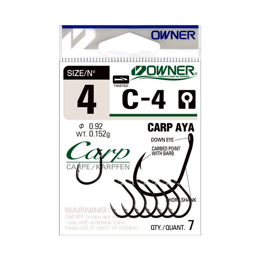 OWNER Carp Aya C-4 са класически японски куки, разработени специално за шарански риболов с дънни монтажи. Моделът е резултат от дългогодишни инженерни разработки на марката OWNER, насочени към постигане на оптимален баланс между здравина, острота и надеждност при борба с едри риби.