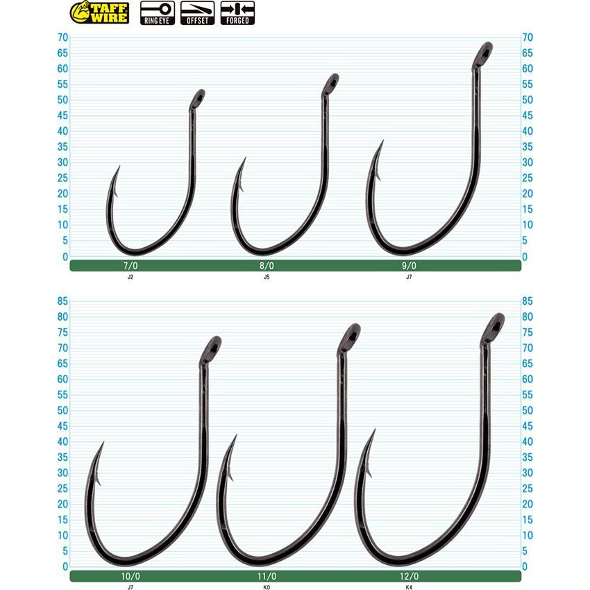 Използваният материал TAFF WIRE е сред най-високите постижения в производството на риболовни куки и гарантира изключителна здравина без компромис с остротата. Изключително острият връх пробива без проблем дори най-твърдите устни на трофейни сомове. Черното никелово покритие осигурява защита от корозия и ниска видимост във водата.