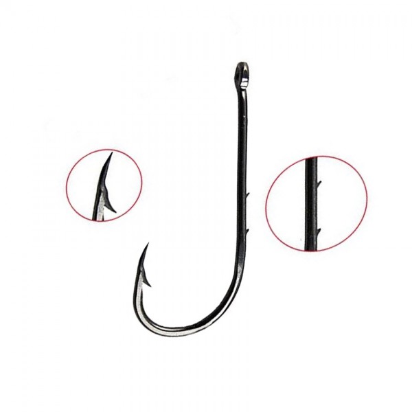 Куките са изработени от Hi-Carbon стомана, химически заточени и с прецизна Cutting Point геометрия за бързо и дълбоко проникване. Подложени са на MBTest за устойчивост при натоварване, което гарантира здравина без деформации. Black Chrome покритието намалява отблясъците и подобрява маскировката под вода.