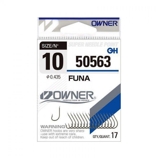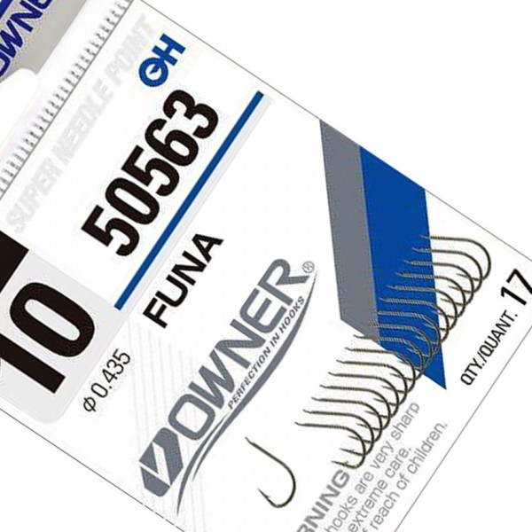 OWNER Funa Brown 50563 са класически японски куки за мирни риби, отличаващи се с късо рамо, странично извито острие и Super Needle Point връх за бързо и сигурно проникване. Тънката, но изключително здрава тел осигурява дискретна презентация и дълъг експлоатационен живот.