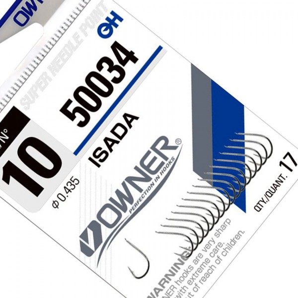 OWNER Isada White са фини японски куки с класическа форма, предназначени за универсален риболов на мирни риби. Моделът е тънък и кован, със сравнително късо рамо и овална форма, което осигурява отличен баланс между чувствителност и сигурна засечка. Никеловото покритие повишава устойчивостта на корозия, а високата острота се запазва дълго време.