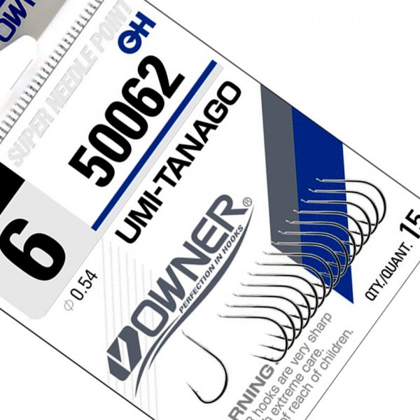 OWNER Umi Tanago White са класически японски куки, предназначени за фин и прецизен риболов на мирни риби. Моделът е кован, с широка форма и право острие, което осигурява стабилна засечка и сигурно задържане на рибата.