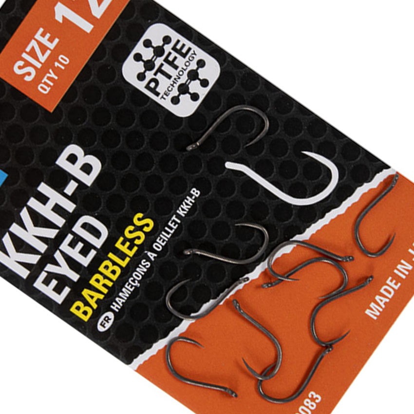 PRESTON KKH-B Eyed Barbless са универсални куки без контра, разработени за фидер, щека и ваглер риболов, както и за комерсиални водоеми с изискване за монтажи без контра. Моделът е с кръгла извивка, която осигурява сигурно задържане на рибата и значително намалява откачанията по време на борба.