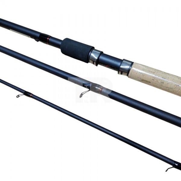Дръжката е комбинирана – корк + EVA, за сигурен и удобен захват при продължителен риболов, а удължената ръкохватка дава допълнителен лост при замятане на дистанция.