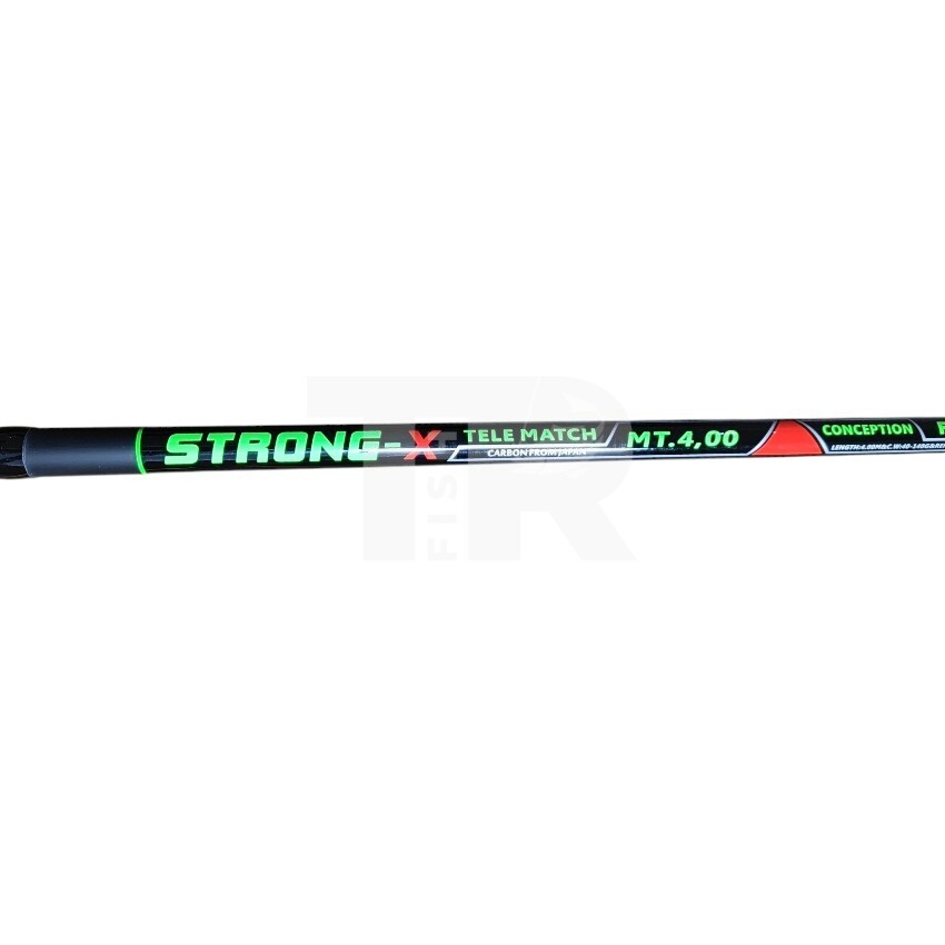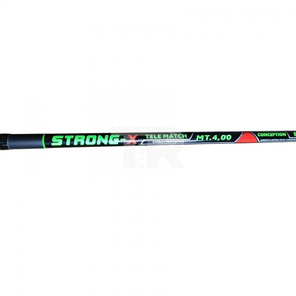 FL Strong Match X 4.00 м е телемач прът от висок клас, изработен от японски карбон, с тънка и изключително стегната бланка. Конструкцията е подсилена с кавалерна оплетка по цялата дължина, което придава допълнителна здравина и контрол при работа с по-тежки плувки и монтажи.