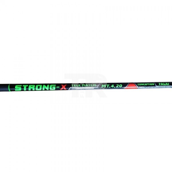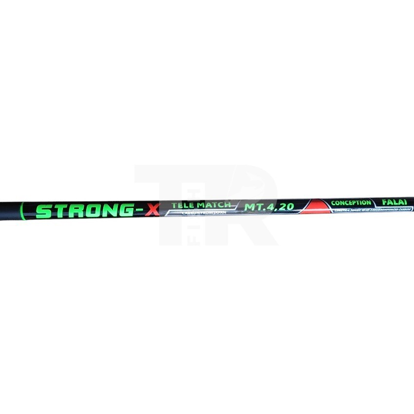 FL Strong Match X 4.20 м е висок клас телемач въдица, изработена от японски карбон, с тънка и стегната бланка, подсилена с кавалерна оплетка по цялата дължина. Това придава допълнителна здравина, минимално усукване и отличен контрол при работа с по-тежки плувки и монтажи.