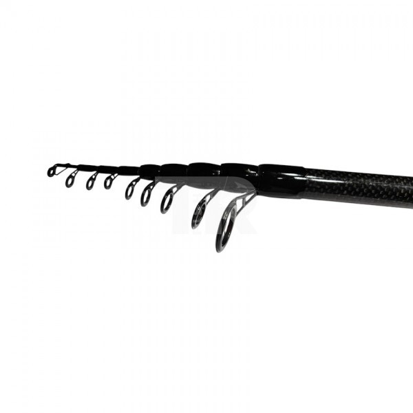 Прътът е лек и добре балансиран, оборудван с удължени SIC водачи, които предотвратяват полепването на влакното и осигуряват плавно замятане. Надеждният макародържач гарантира сигурно фиксиране на макарата дори при интензивен риболов.