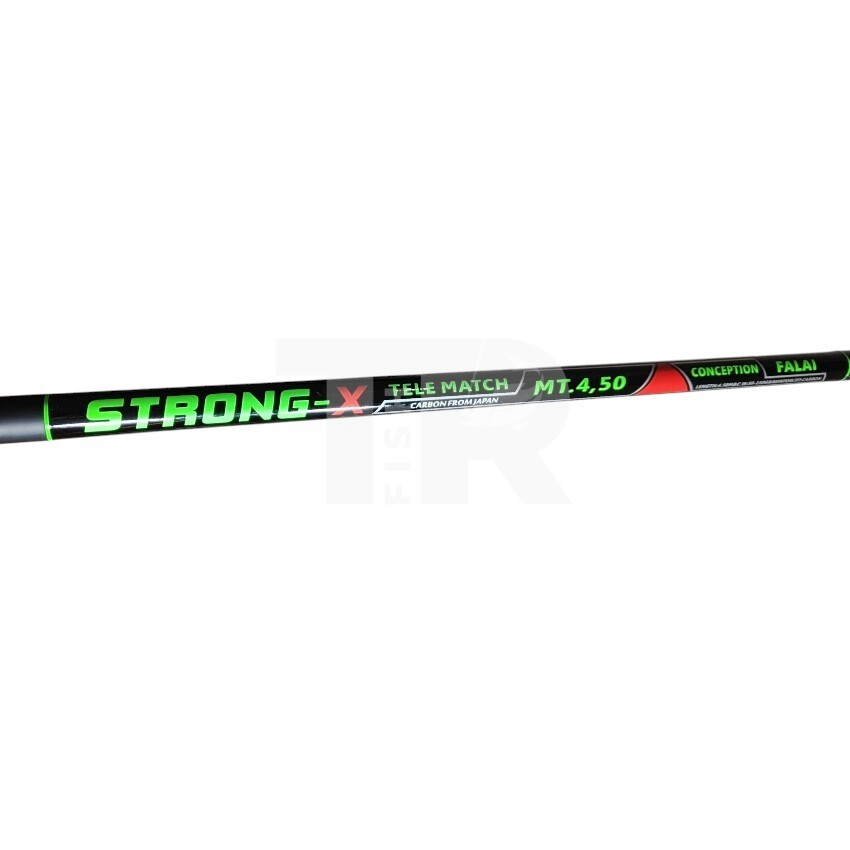 FL Strong Match X 4.50 м е висок клас телемач въдица, изработена от японски карбон, с тънка и стегната бланка, подсилена с кавалерна оплетка по цялата дължина. Това придава допълнителна здравина, минимално усукване и отличен контрол при работа с по-тежки плувки и монтажи.