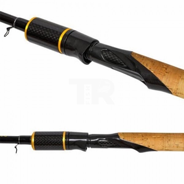 Моделът е оборудван с неръждаеми водачи с тънки вложки, които минимизират триенето и позволяват плавно преминаване на влакното при далечни замятания. Дръжката комбинира корк и EVA зона в задната част, осигуряваща сигурен и нехлъзгащ захват. Въдицата разполага и със сгъваемо ухо за куката и лек, прецизен макародържач.